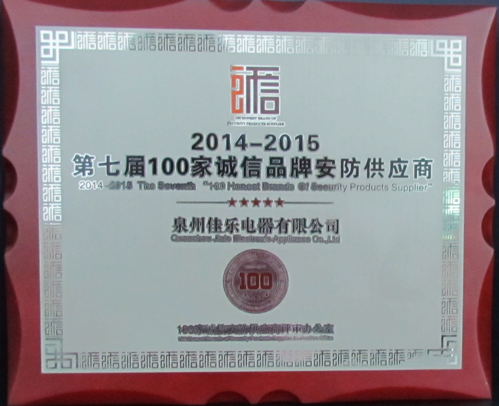 2014-2015第七届100家诚信品牌安防供应商
