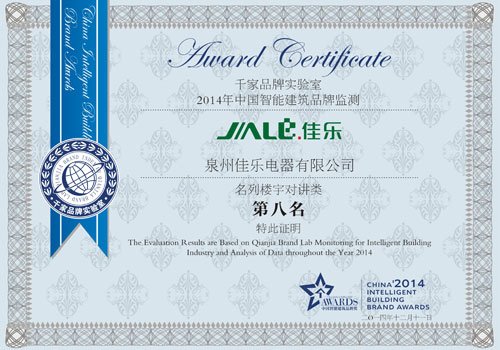2014年12月11日,由千家传媒旗下千家品牌实验室主办的“2014年中国智能建筑品牌奖”颁奖盛宴在广州东方宾馆隆重举行。泉州心博(中国)凭借其强大的品牌实力及影响力再次荣获“2014年度十大楼宇对讲系统品牌奖”。